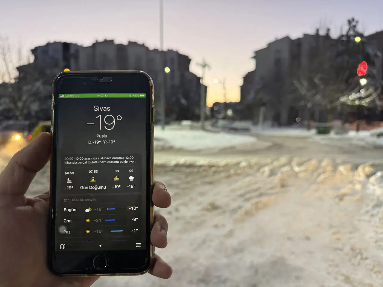 Sivas’ta önceki gün şehri etkisi altına alan kar yağışının ardından soğuk hava etkili oldu. Dün akşam saatlerinde etkisini yitiren kar yağışının ardından hava sıcaklığı düştü. Termometreler sabah saatlerinde sıfırın altında 19 dereceye kadar düştü. Sivas’tan doğarak Karadeniz’e dökülen ve Türkiye’nin en uzun nehri olan Kızılırmak, kısmen dondu. Sibirya soğuklarını andıran kentte kartpostallık görüntüler oluştu.