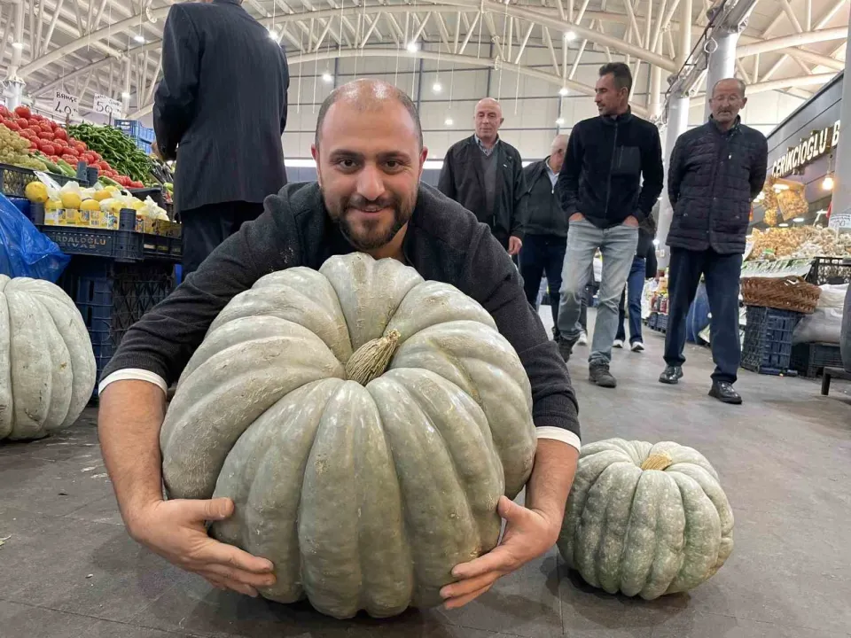 Hayatında ilk defa bu kadar büyük bal kabağı gördüğünü ifade eden Ferhat Çobanoğlu,