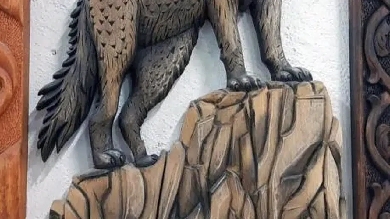 Kursiyerlerin taş üzerine işlediği Osmanlı Devlet Arması, ince işçiliği ve detaylarıyla öne çıkarken, motiflerdeki derinlik geleneksel bezeme sanatını başarıyla yansıtıyor. Ahşap oyma bölümünde hazırlanan bozkurt figürü ise detaylı tüy dokusu ve dinamizmiyle profesyonel bir çalışmayı andırıyor. Doğal ahşap dokusunun korunması ve oyma tekniğinin ustalığı, eseri daha da etkileyici kılıyor.
