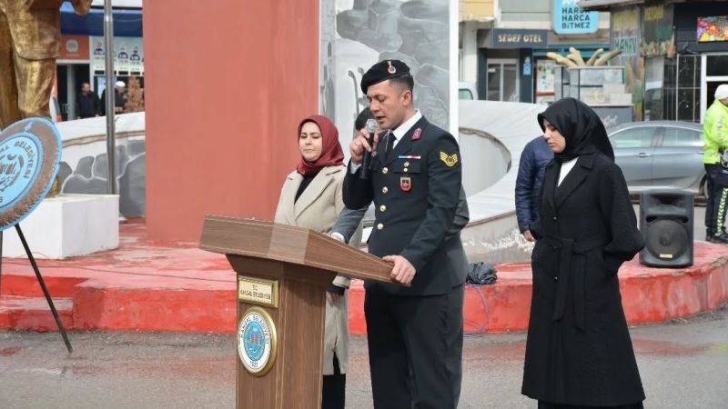18 Mart Çanakkale Zaferi'nin 110. yıl dönümü etkinlikleri kapsamında Kangal’da Atatürk Anıtı'na çelek sunuldu.