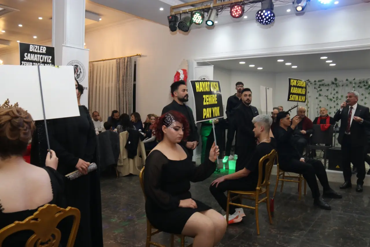 Sahneye taşınan gösteride, uyuşturucu kullanımının özellikle gençler üzerindeki etkileri çarpıcı bir dille anlatılırken, sanat ve beden dili aracılığıyla izleyenlere derin bir farkındalık kazandırılması hedeflendi. Gösteri, geceye katılanlardan büyük alkış aldı.
