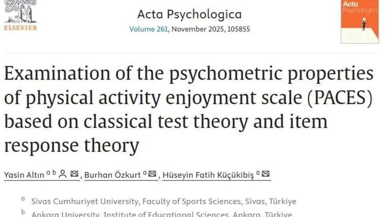 Sivas Cumhuriyet Üniversitesi (SCÜ) Spor Bilimleri Fakültesi öğretim üyeleri Prof. Dr. Hüseyin Fatih Küçükibiş, Dr. Öğr. Üyesi Burhan Özkurt ve Dr. Öğr. Üyesi Yasin Altın uluslararası akademik arenada önemli bir başarıya imza attı. Üç öğretim üyesinin ortak çalışması olan “Examination of the psychometric properties of physical activity enjoyment scale (PACES) based on classical test theory and item response theory” başlıklı bilimsel makale, SSCI indeksli ve Q1 diliminde yer alan Acta Psychologica dergisinde yayımlandı.