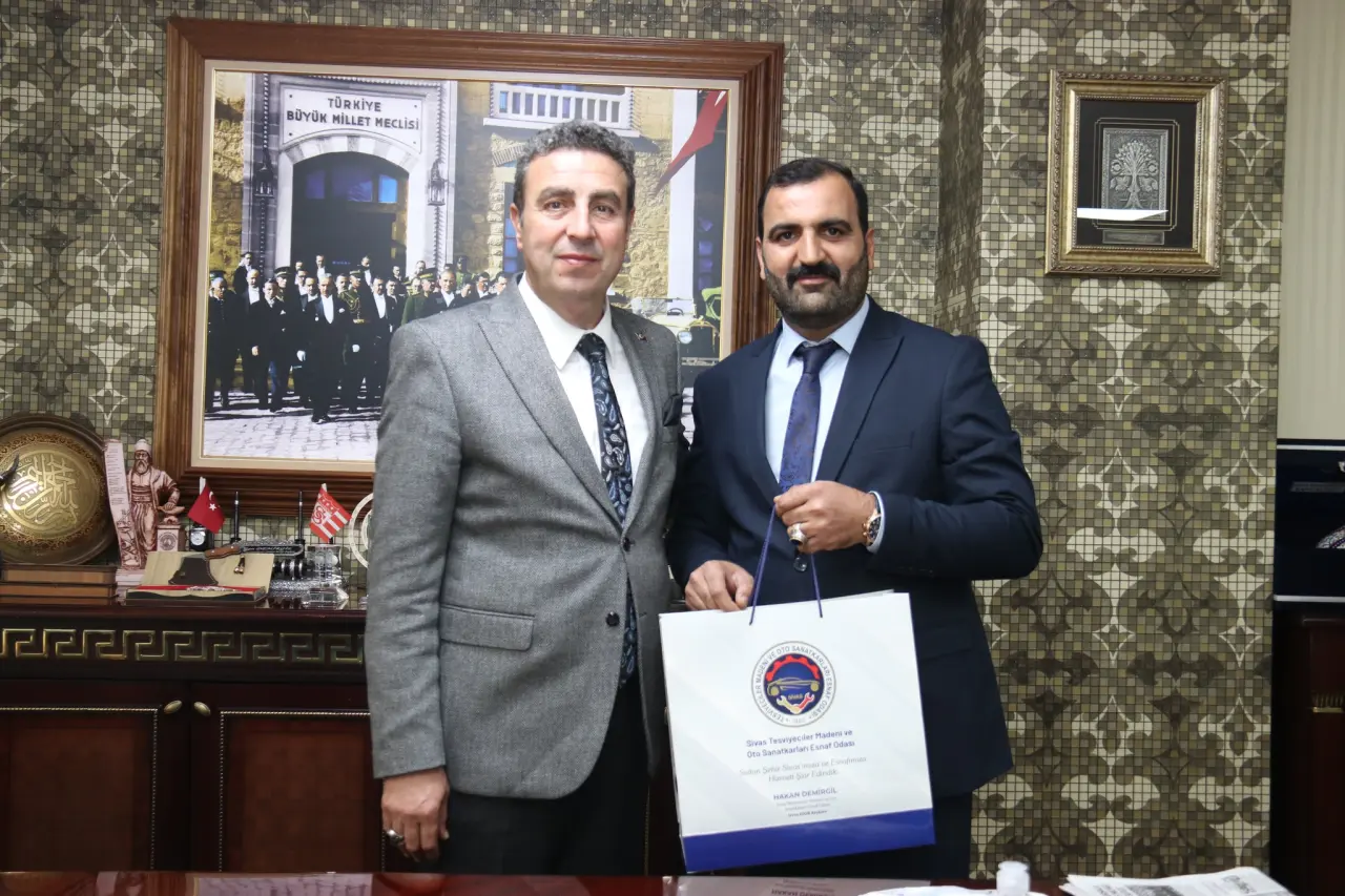 Sivas Tenekeciler ve Madeni İşler Odası Başkan Adayı Burak Polat ve beraberindeki heyet, Sivas Esnaf ve Sanatkarlar Odaları Birliği Başkanı Hakan Demirgil’i ziyaret etti.