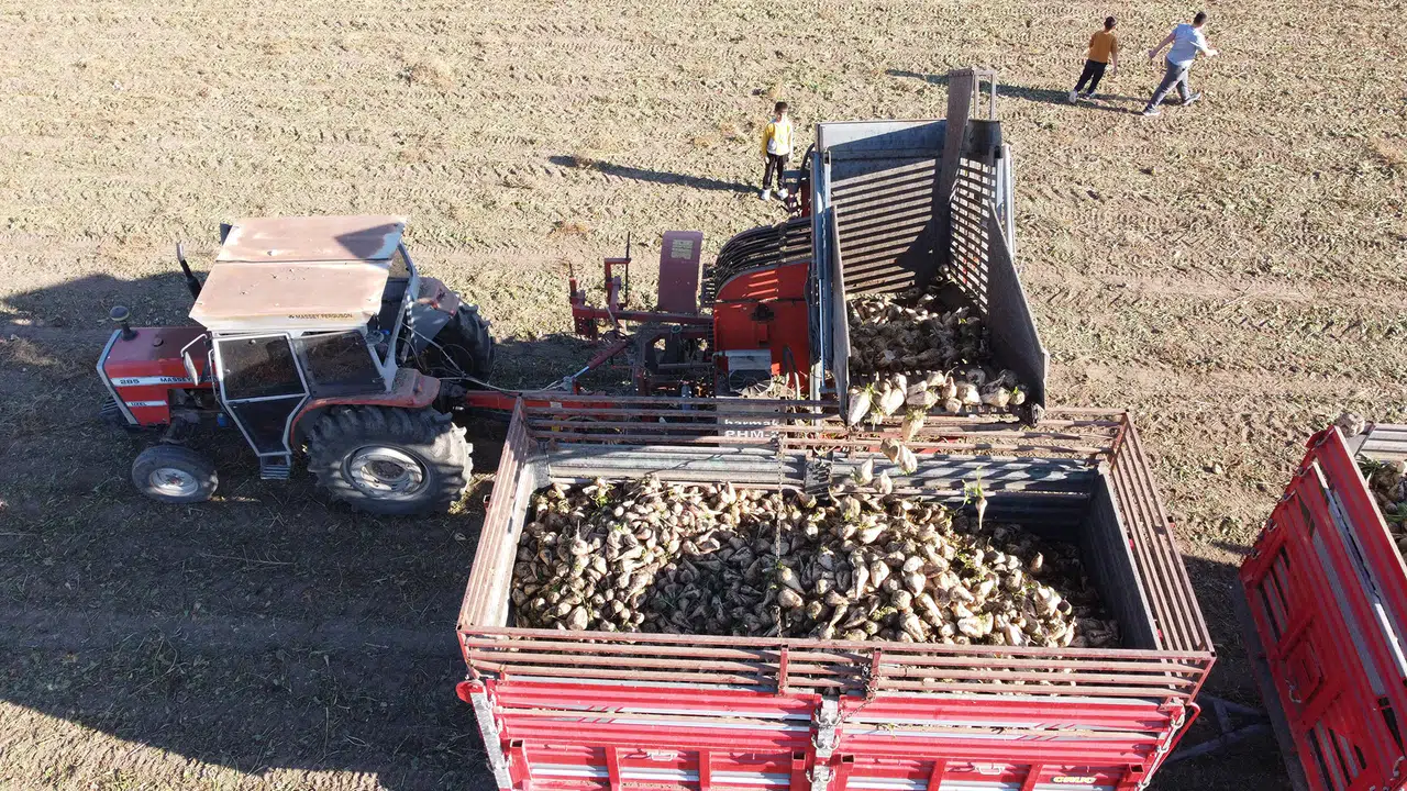 Türkiye genelinde şeker pancarı hasadında sona yaklaşılırken, çiftçiler aylar süren emeklerinin karşılığını almaya başladı. Çiftçilerin söküm mesaisi dron ile görüntülendi.