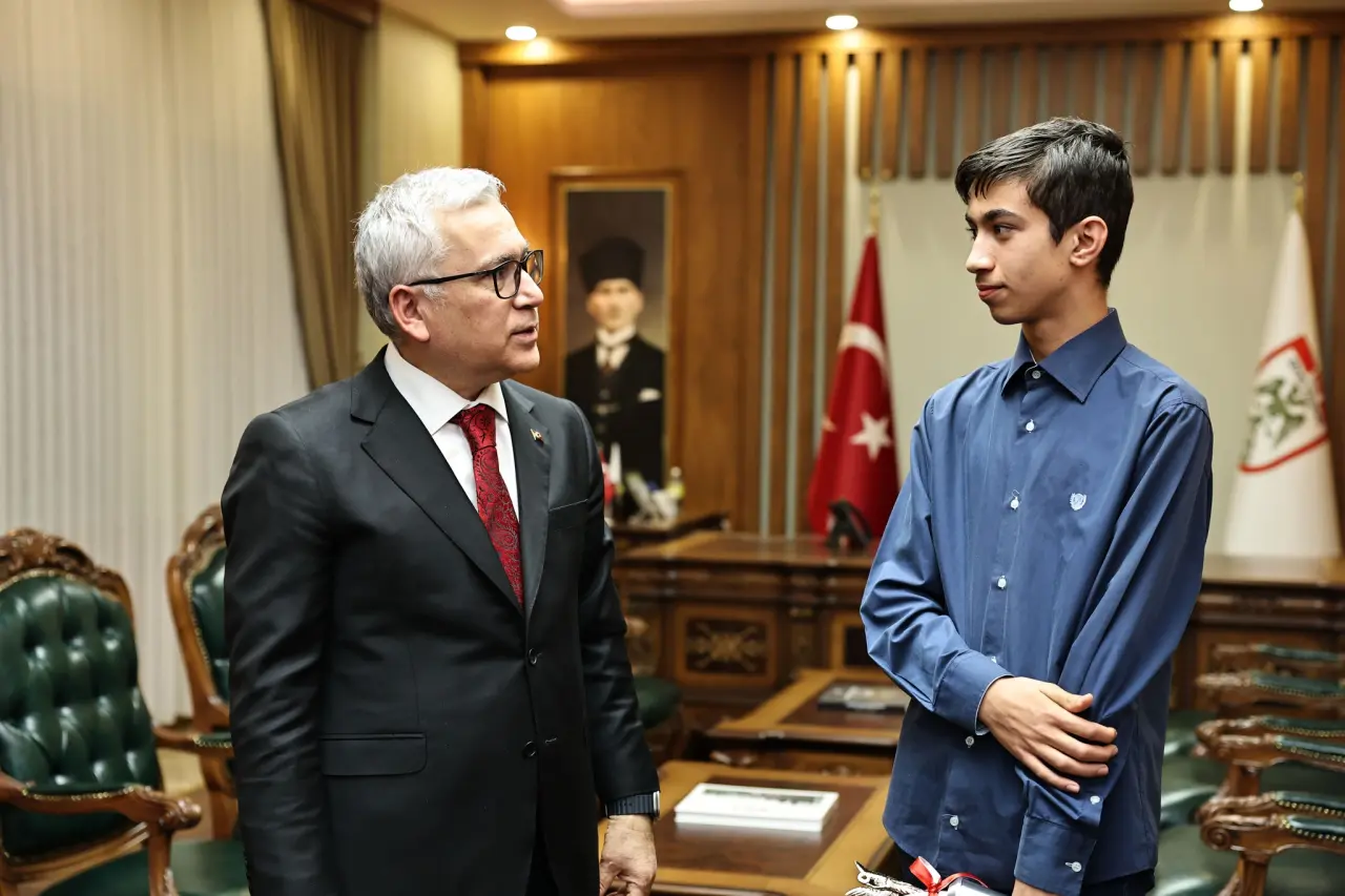 Türkiye’yi başarıyla temsil eden Arda Uzun ve öğretmeni Serkan Ayyıldız, elde ettikleri bu önemli derecenin ardından Vali Yılmaz Şimşek’i makamında ziyaret etti. Ziyarette yarışma süreci hakkında bilgi veren Uzun ve Ayyıldız, verilen destekler için teşekkürlerini iletti.