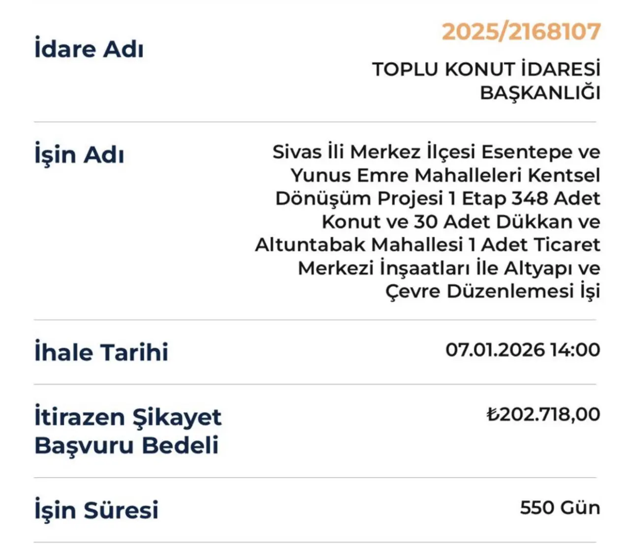Projelerin altyapı ve çevre düzenlemesiyle birlikte gerçekleştirileceğini ifade eden Tanrıverdi, ihalenin 7 Ocak 2026 tarihinde saat 14.00’te yapılacağını duyurdu.