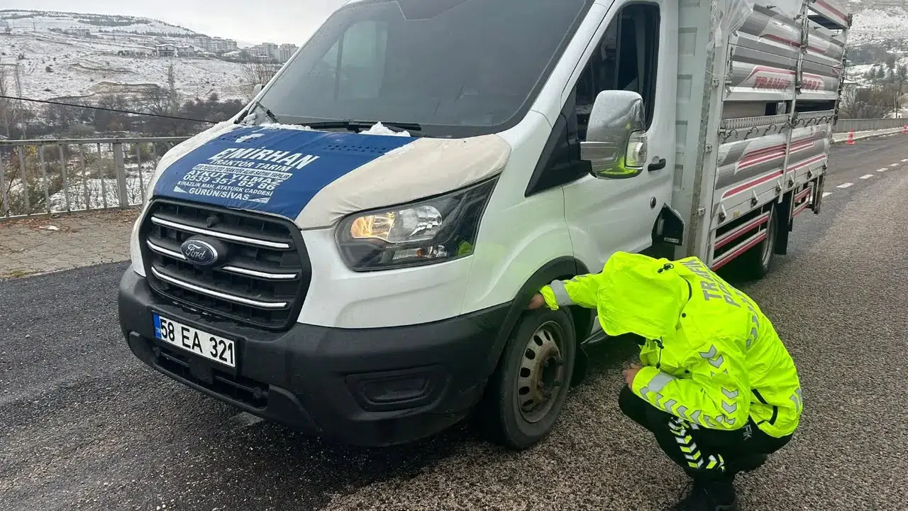 Sivas’ın Gürün ilçesinde Bölge Trafik Denetleme İstasyon Amirliği ekipleri, kış şartlarının etkisini artırmasıyla birlikte kış lastiği denetimlerine hız verdi. Ticari araçlarda zorunlu hale getirilen kış lastiği uygulaması kapsamında ekipler hem kontrol hem de bilgilendirme çalışmaları yapıyor.