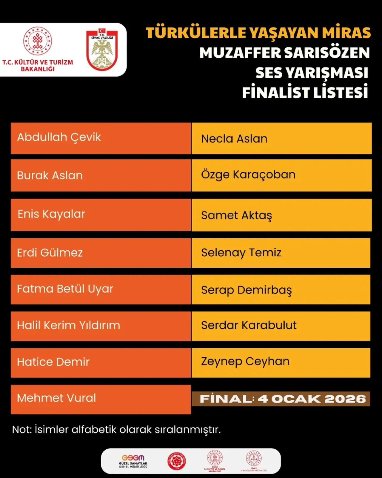 Türk halk müziğinin unutulmaz ismi Muzaffer Sarısözen’in mirasını yaşatmayı amaçlayan yarışmanın Büyük Finali, 4 Ocak tarihinde Muhsin Yazıcıoğlu Kültür Merkezinde gerçekleştirilecek.