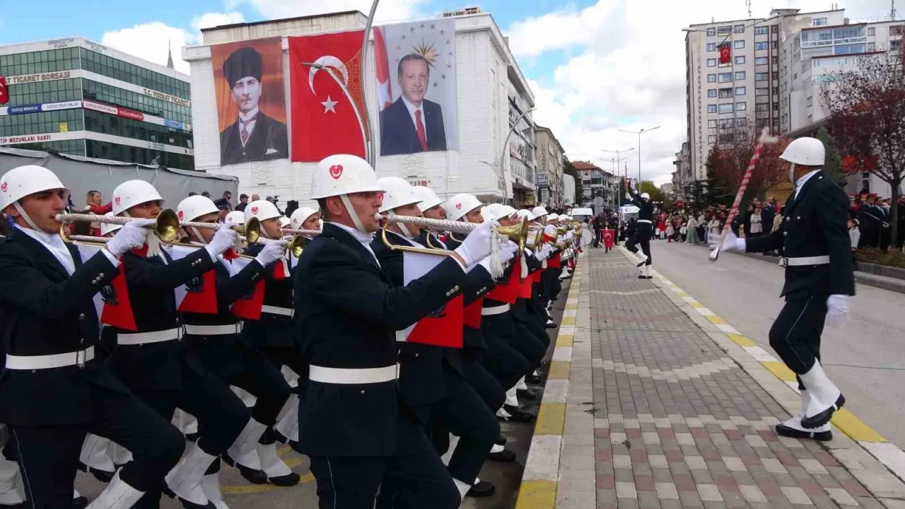 Cumhuriyetin ilanının 102’nci yıl dönümü Yozgat’ta coşkuyla kutlandı. Törende jandarma komandolar gösteri yaparak Türk bayrağı açtı.