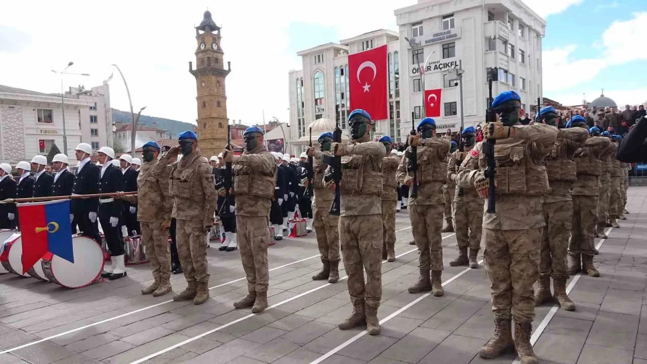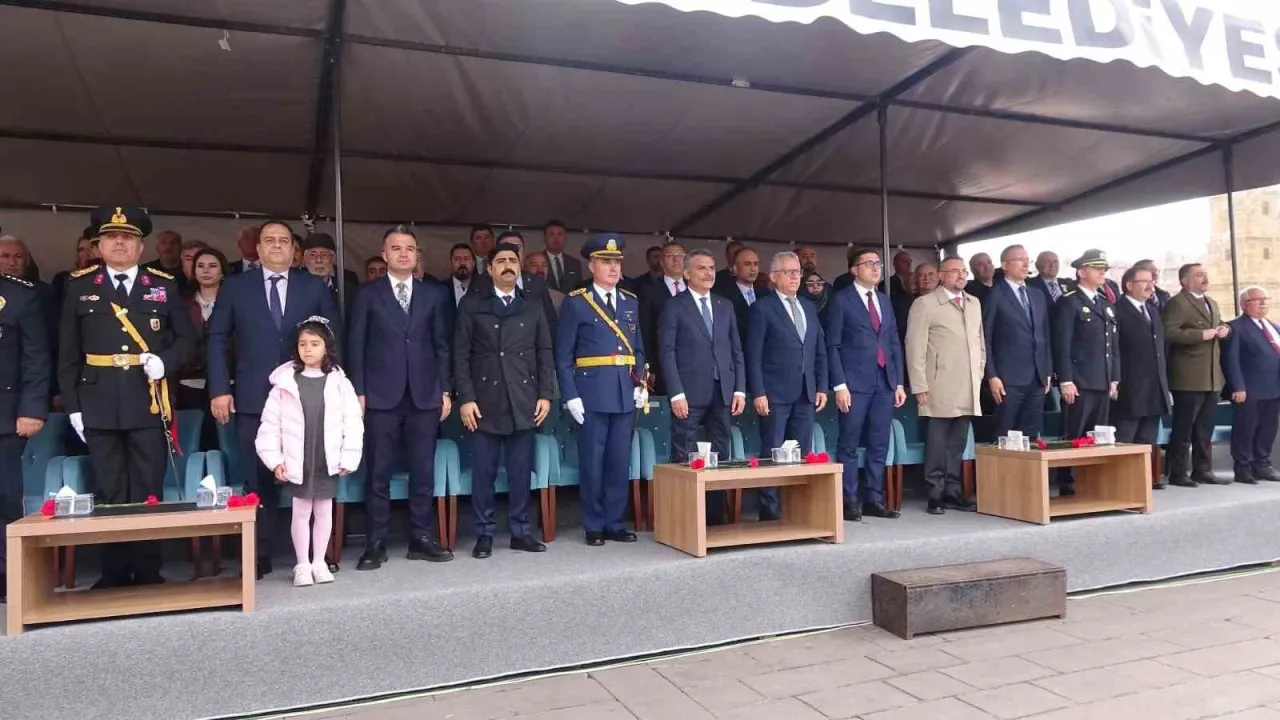 Yozgat Cumhuriyet Meydanı’nda düzenlenen programa Yozgat Valisi Mehmet Ali Özkan, Yozgat Belediye Başkanı Kazım Arslan, Garnizon Komutan Vekili Hava Mühendis Albay Hasan Şimşek ve il protokolü katıldı. Vali Özkan’ın tören alanına girişi ve katılımcıları selamlamasıyla başlayan tören, saygı duruşu ve İstiklal Marşı ile devam etti.
