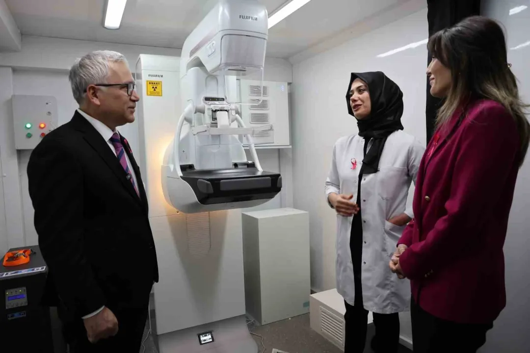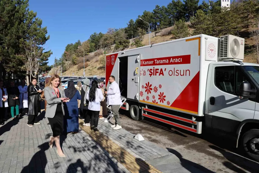 Mobil tarama aracı, Meme Kanseri Farkındalık Ayı çerçevesinde Sivas Devlet Hastanesi önüne konuşlanarak tarama yapmaya başladı. Aracı ziyaret eden Sivas Valisi Dr. Yılmaz Şimşek, görevli sağlık personeli ve vatandaşlarla bir araya gelerek sohbet etti.