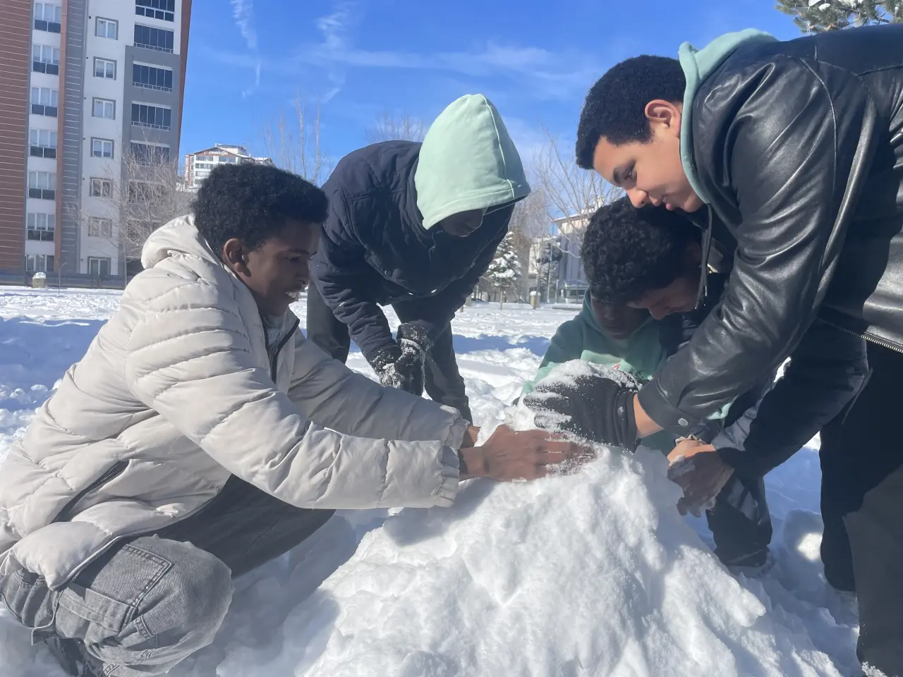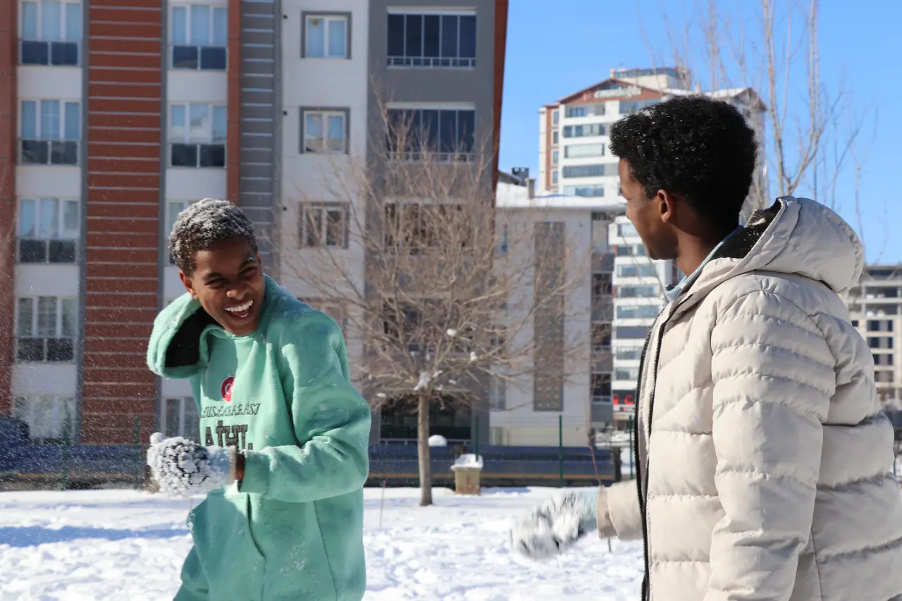 Sivas Uluslararası Şehit Münir Murat Ertekin Anadolu İmam Hatip Lisesi’nde eğitim gören birçok Afrikalı öğrenci, hayatlarında ilk kez karla tanıştı. 70 yabancı öğrencinin eğitim ve öğretim gördüğü okuldaki öğrencilerin büyük bir bölümü Afrika kıtasından Sivas’a geldi.
