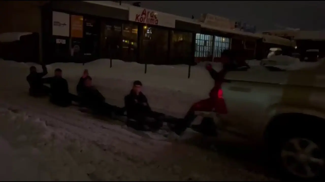 Sivas'ta sanayi sitesinde esnaflık yapan Tanju Kaya, etkili olan kar yağışını eğlenceye dönüştürdü. İş yerinde birlikte çalıştığı çırakların karın tadını çıkarmak istediklerini söylemesi üzerine Kaya, aracın arkasına halat bağlayarak lastiklerin üzerine oturan çırakları karda kaydırdı. Beyaza bürünen sanayi sitesi, renkli anlara sahne oldu. Çıraklar doyasıya eğlendi.