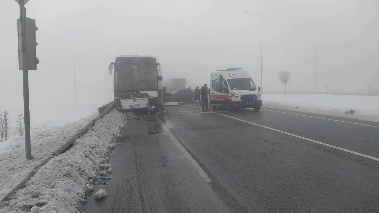 Sivas Gemerek'te Yolcu Otobüsünün Karıştığı Zincirleme Kazada İlk Belirlemelere Göre 2 Yaralı