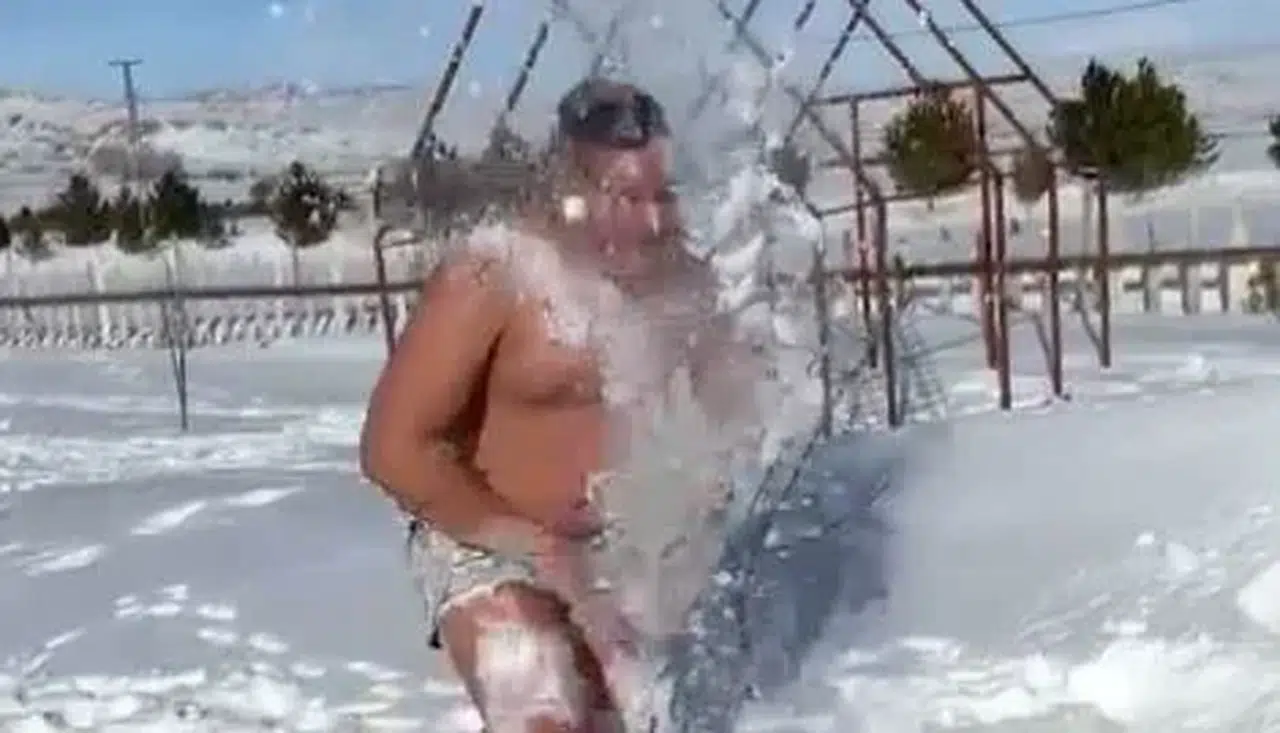 Sivas'ta yaşayan 14 yaşındaki judo sporcusu Abdullah Duhan Kartal, soğuk havaya aldırış etmeden kar banyosu yaptı.