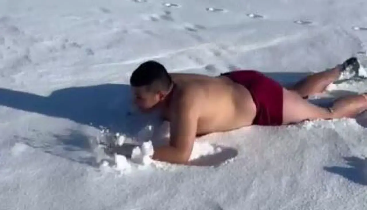 Sivas'ta 6 yaşından bu yana judo ile ilgilenen Abdullah Duhan Kartal (14), soğuk havada kar banyosu yaptı. Vücudunu daha dinç tutmak adına karların içine atlayan genç sporcu görenleri hayrete düşürdü.