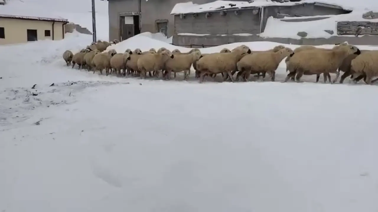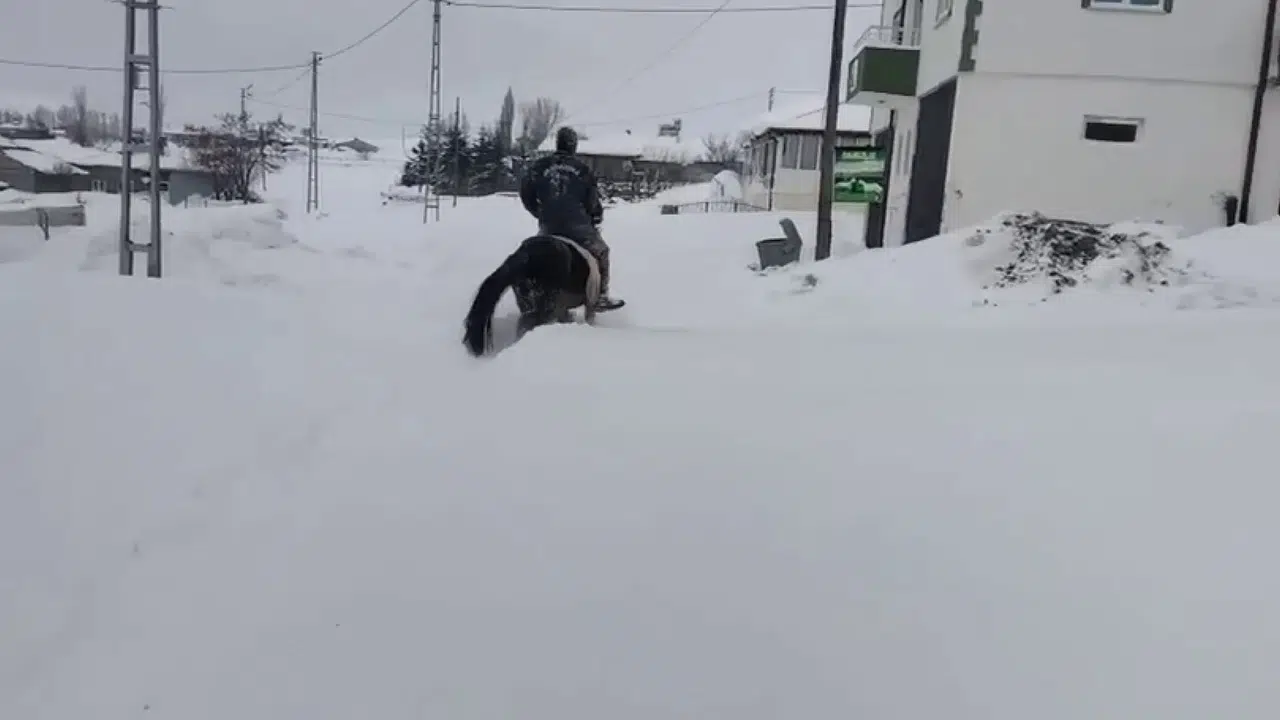 Sivas'ın Altınyayla ilçesi Altınyurt Mahallesi’nde yaşayan Ruşan Atalay, karla kaplanan köyde yollar araç ulaşamına kapandığından ağılına ulaşmak için ata binmek zorunda kaldı.
