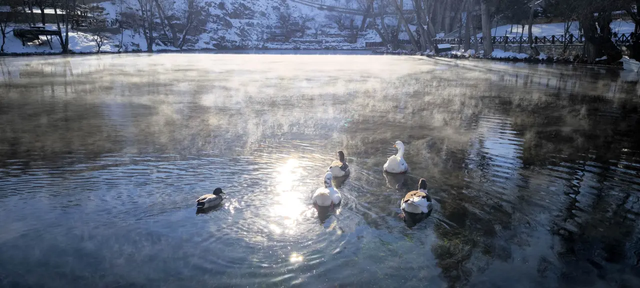 Sibirya soğuklarının yaşandığı Sivas'ta suya dair ne varsa dondu, donmayan tek göl, bozkırın nazar boncuğu Gökpınar gölü oldu.