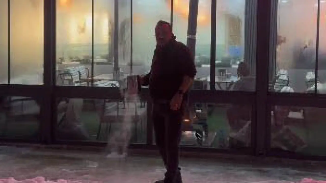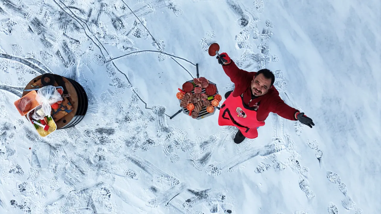 Sivas'ta yaşayan ve çektiği sosyal medya videoları ile ün salan tostçu Raşit Yıldırım, kentte etkili olan soğuk havayı takipçilerine göstermek istedi. İş yerinin önünde sıcak su şovu yapmak isteyen Raşit Yıldırım, suyu havaya dökerek donmasını görüntülemek istedi.
