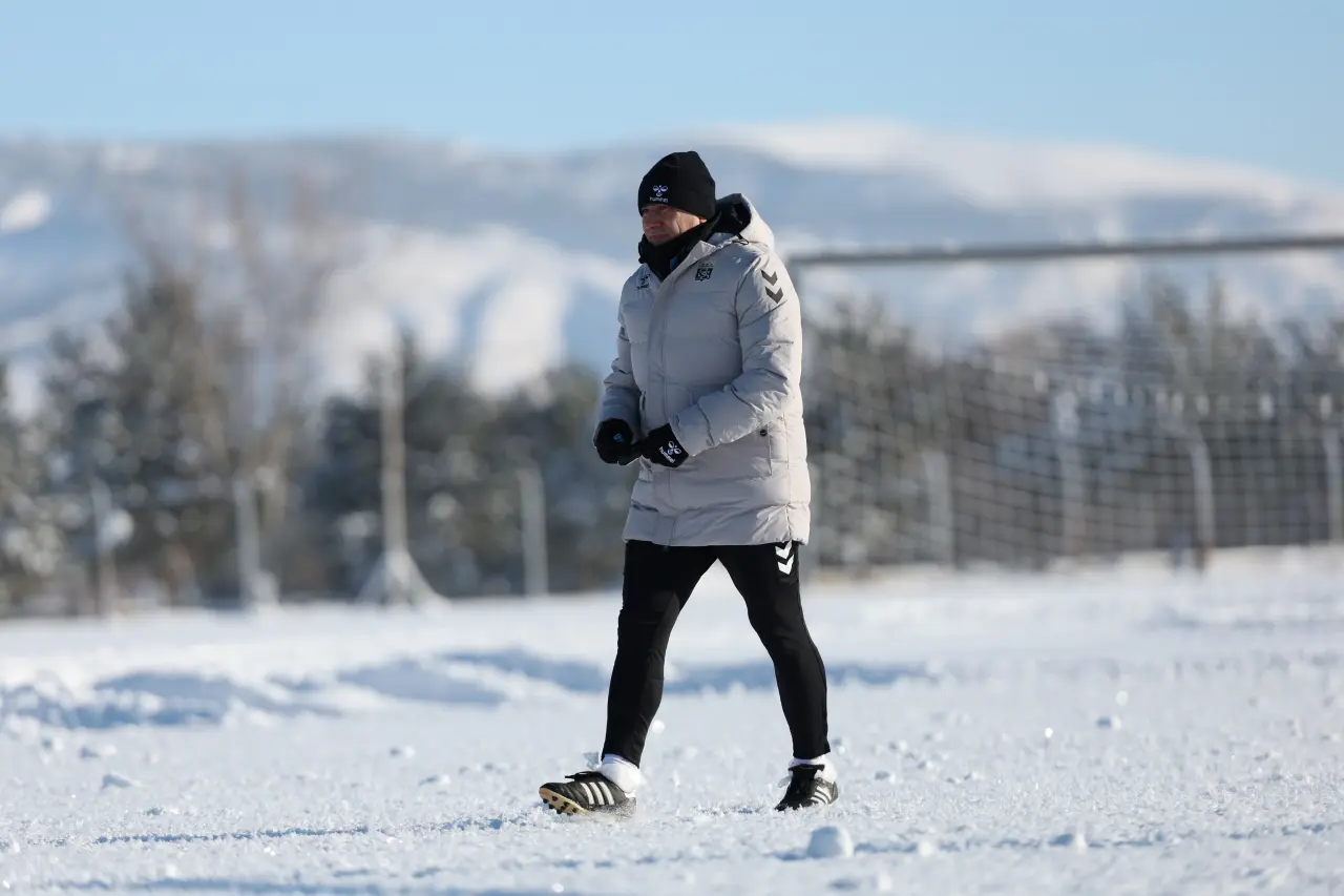Teknik Direktör Mehmet Altıparmak yönetiminde kulüp tesislerinde sıfırın altında 15 derece hava sıcaklığında yapılan idman, ısınma hareketleriyle başladı.
