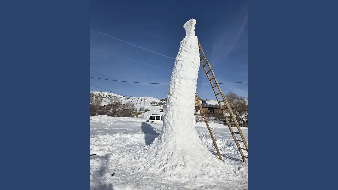 Yıldızeli ilçesine bağlı Geynik köyünde yoğun kar yağışının ardından biriken karlar, ilginç bir çalışmaya sahne oldu. Köyde yaşayan Yakup Aydın, çocukları ve arkadaşlarının da desteğiyle, iskele kullanarak sadece bir gün içerisinde yaklaşık 8 metre yüksekliğinde dev bir kardan adam yaptı.