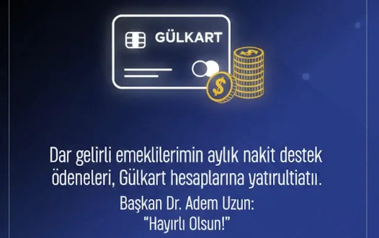 Belediye Başkanı Dr. Adem Uzun, konuyla ilgili yaptığı paylaşımda, "Dar gelirli emeklilerimiz için sağlamış olduğumuz aylık destek ödemelerinin Ocak ayı taksidi, hemşehrilerimizin Gülkart hesaplarına yatırılmıştır. Hayırlı olsun." ifadelerini kullandı.