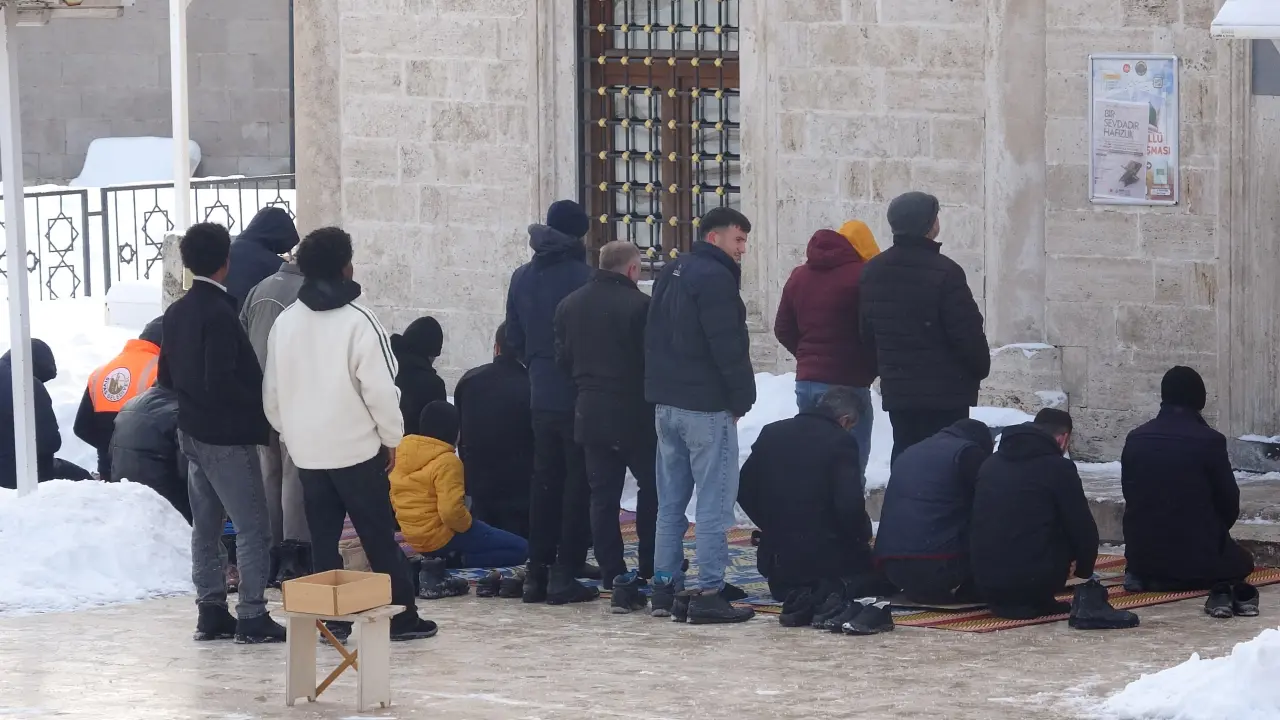 Sivas’ta Dondurucu Soğuğa Rağmen Seccadeler Kara Serildi: Cemaat Dışarıya Taştı