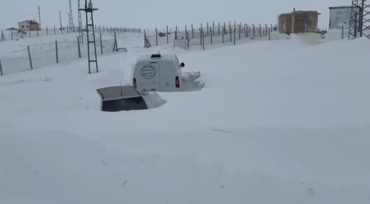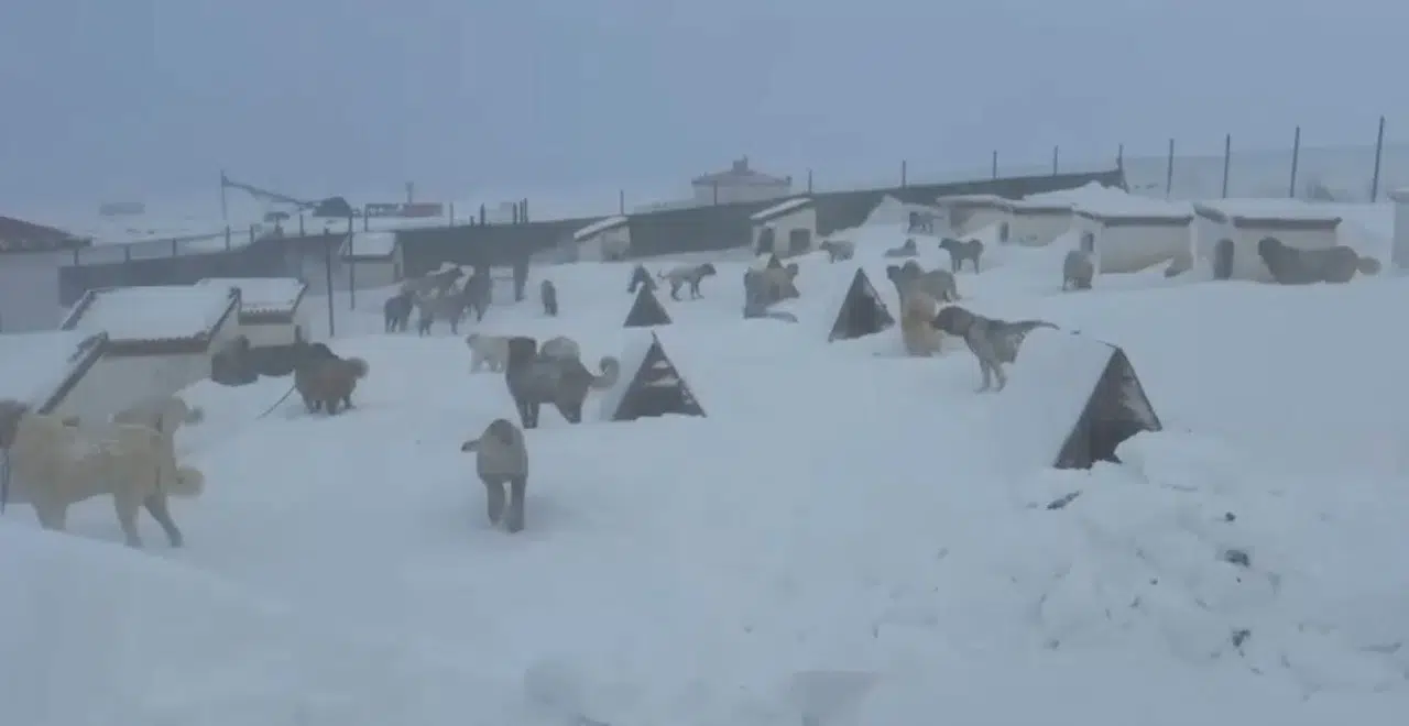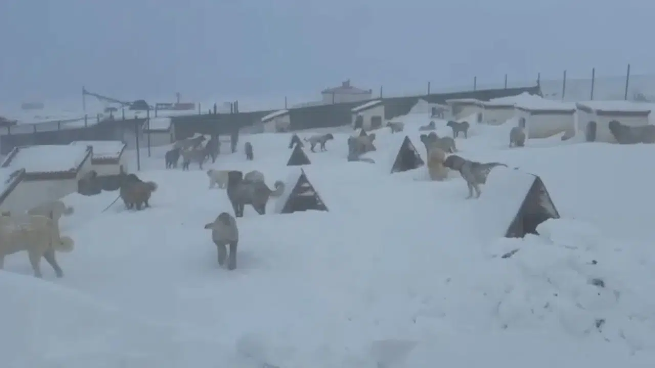 Yoğun kar yağışı ve tipinin etkili olduğu Sivas'ın Altınyayla ilçesinde bir Kangal yetiştiricisi, hayvanlarını kontrol etmek için gittiği çiftlik yolunda kara saplandı. Güçlükle çiftliğe ulaşan vatandaş, gördüğü manzara karşısında ise gözlerine inanamadı.