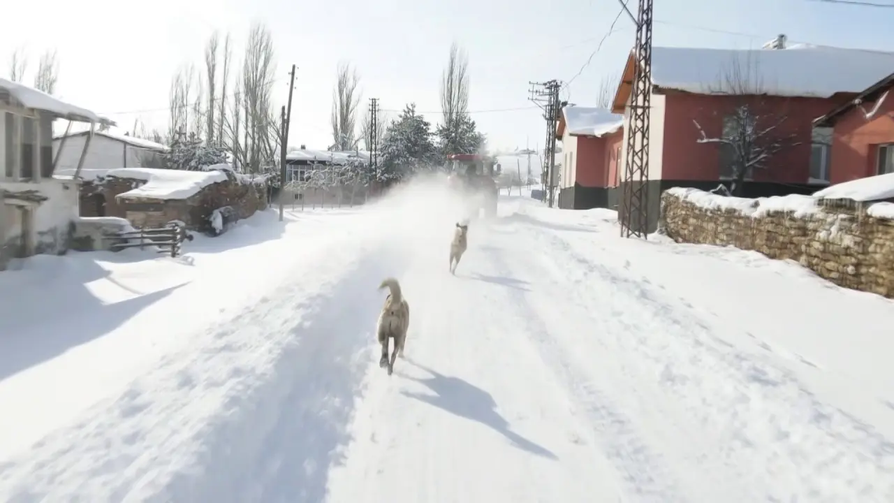 Arkadaşlarıyla birlikte traktörün arkasına halatla bağlanan lastiğin içine giren Çelik, karla kaplanan köy yollarında çekilerek gezdi. Eğlenceli anlara çevredeki köpeklerin de eşlik etmesi renkli görüntülerin ortaya çıkmasına neden oldu. Yaşananlar aksiyon kamerası ve dron ile kaydedildi.