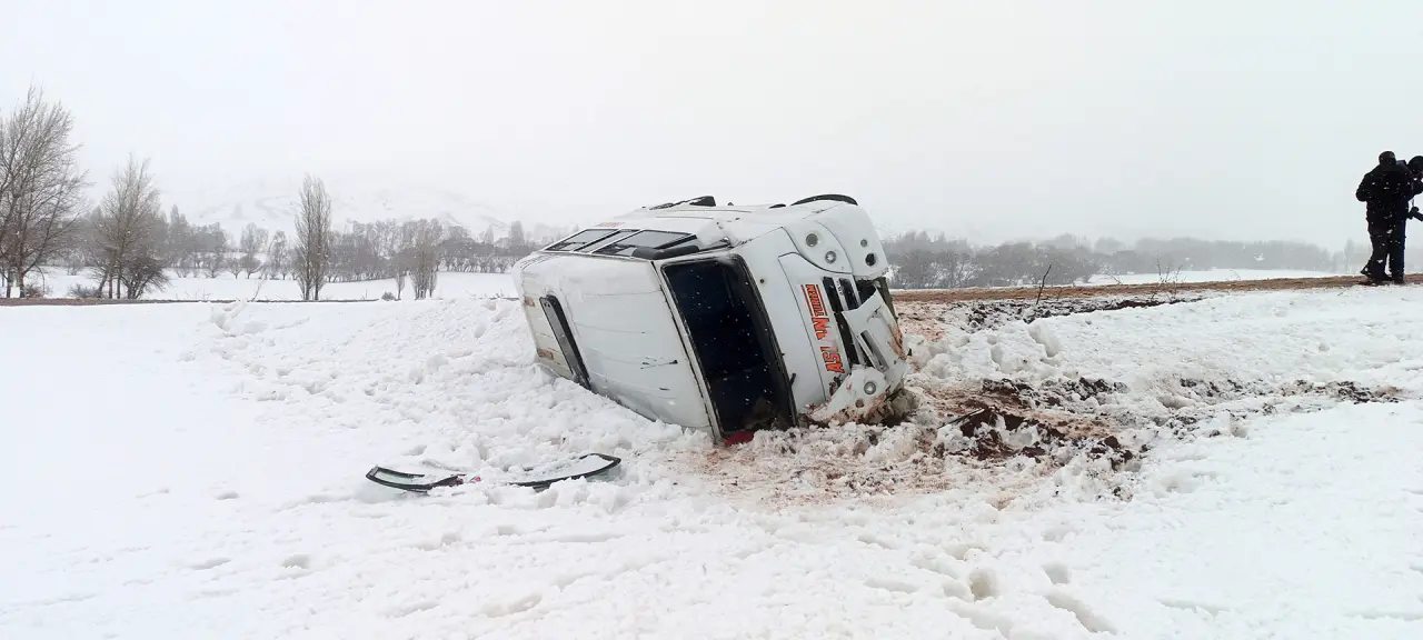 Sivas’ta öğrenci servisi kar ve yoldaki buzlanma nedeniyle şarampole devrildi. Kazada sürücü ve 13 öğrenci yaralandı. Edinilen bilgiye göre kaza Sivas’ın Yıldızeli ilçesi, Güneykaya köyü ve Kalkım beldesi arasında meydana geldi.