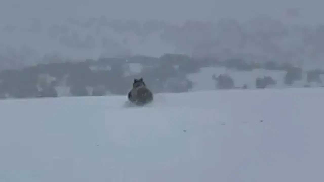 Sivas'ta bir vatandaş, aracıyla ilerlediği esnada kış uykusuna yatmayan ayıyı görüntüledi. Bir süre görüntülenen ayı, kaçarak uzaklaştı.