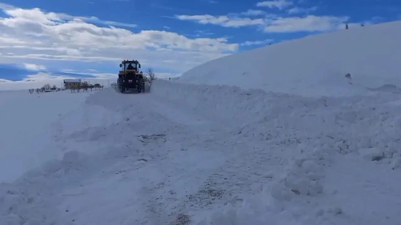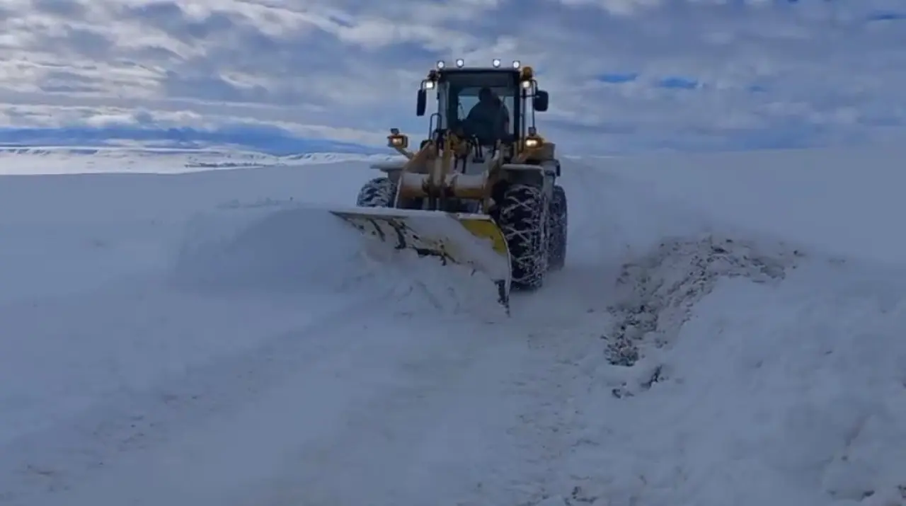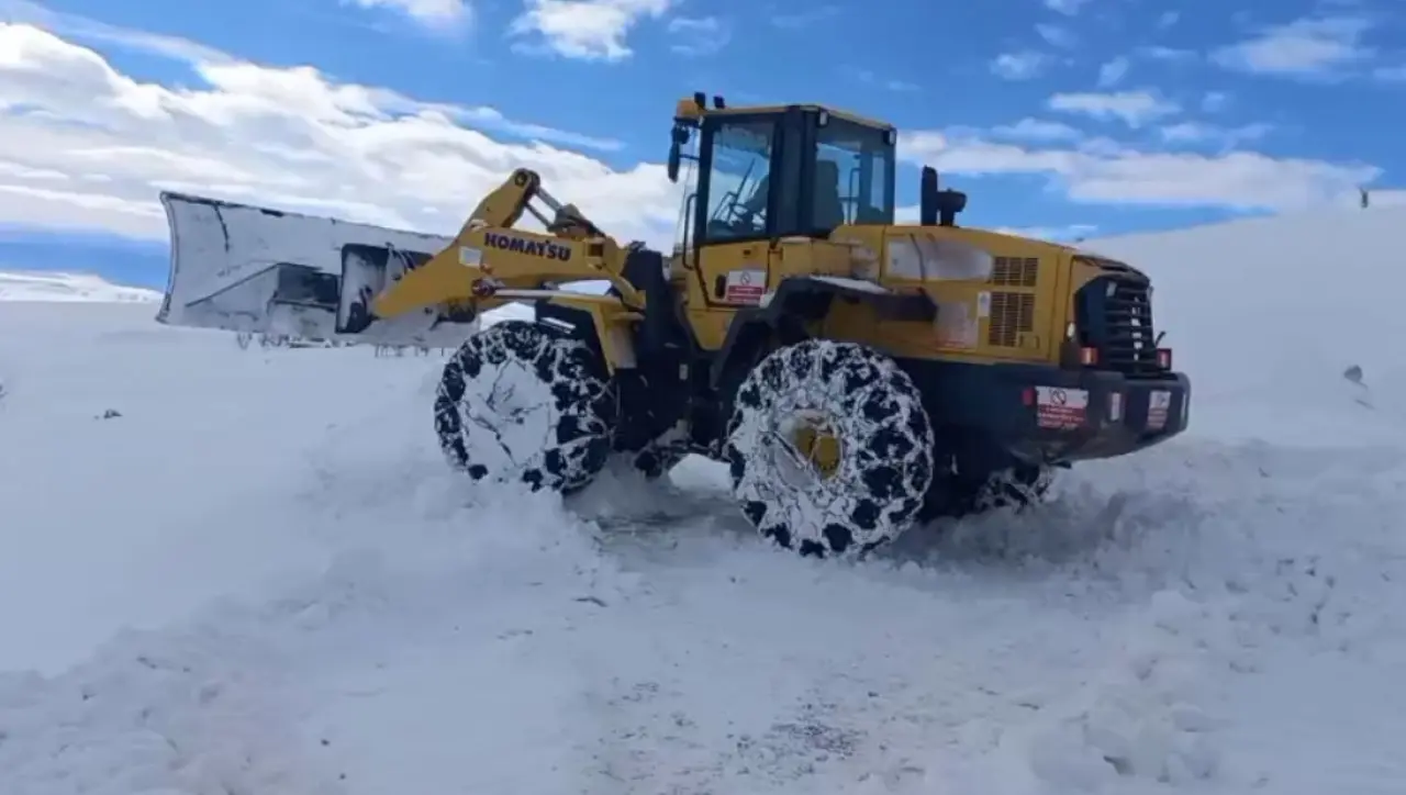 Sivas'ta etkili olan tipi sonrası köy yolunun kapanmasıyla köydeki cenazeyi almak için gitmeye çalışan nakil aracının yolunu iş makineleri açtı.