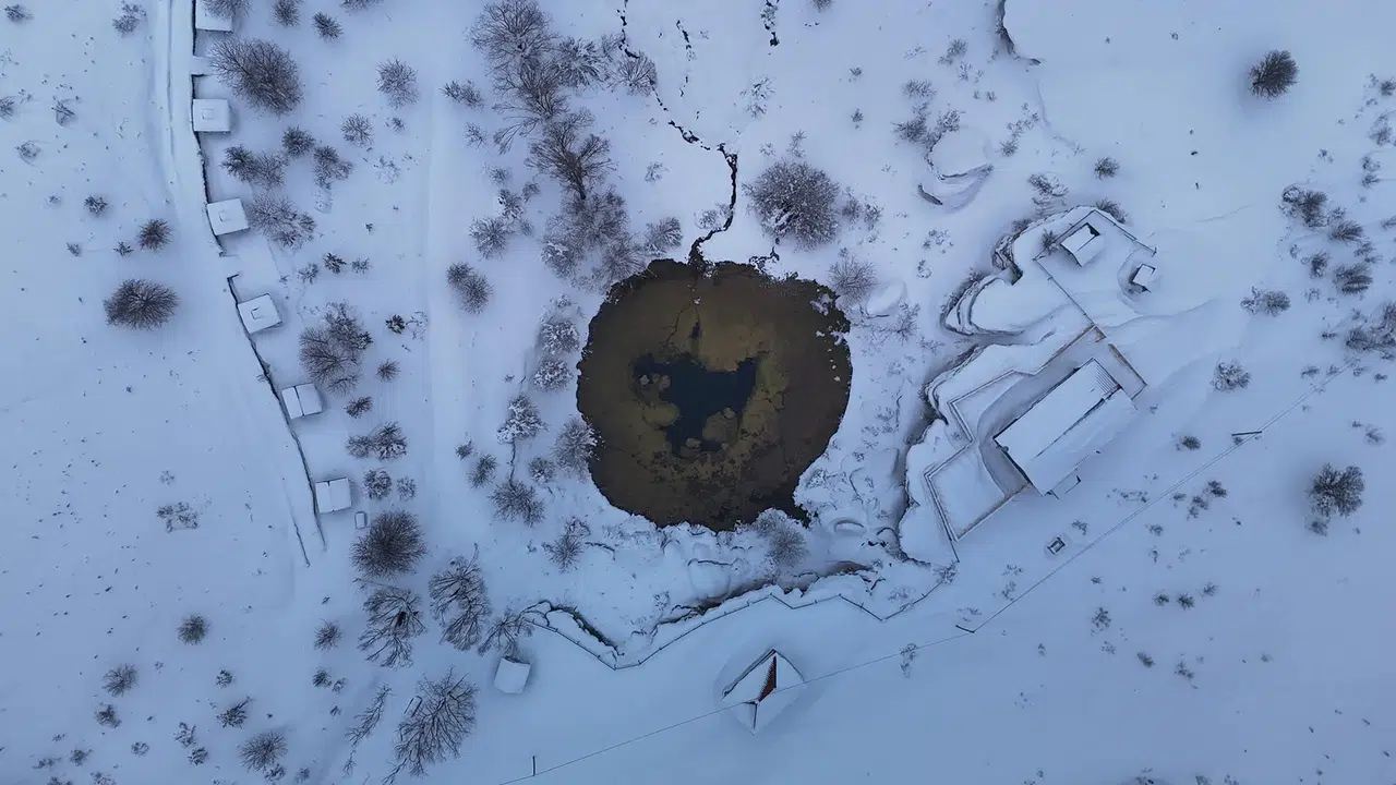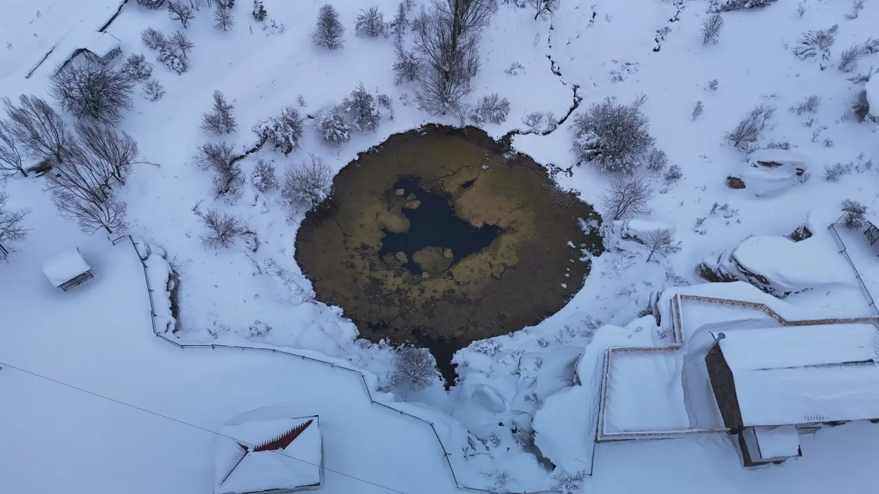 Sivas’ta bulunan ve her mevsim farklı güzelliğe bürünen Dipsizgöl ve şelalesi, yağan kar ile birlikte eşsiz manzaralar oluşturdu. Timsah gözüne benzetilen Dipsizgöl soğuk havaya rağmen donmazken Dipsizgöl Şelalesi’nde devasa buz sarkıtları oluştu. Sivas’ın Karadeniz’i olarak adlandırılan bölge, dron ile havadan görüntülendi.