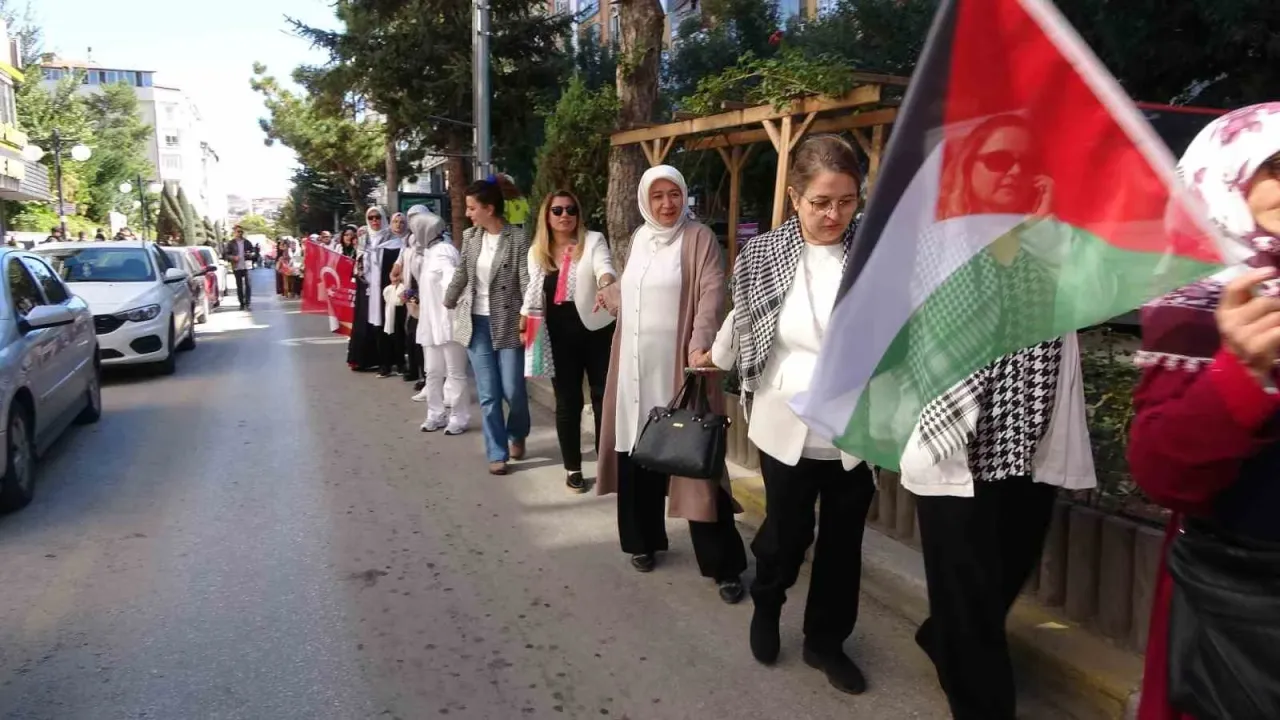 Topluluk adına açıklama yapan AK Parti Kadın Kolları Başkanı Hatice Sarı Öcal, kadınlar olarak Gazze’nin sessiz çığlığına ses olmak için el ele verdiklerini tüm dünyaya göstermek adına meydanlarda olduklarını ifade etti.