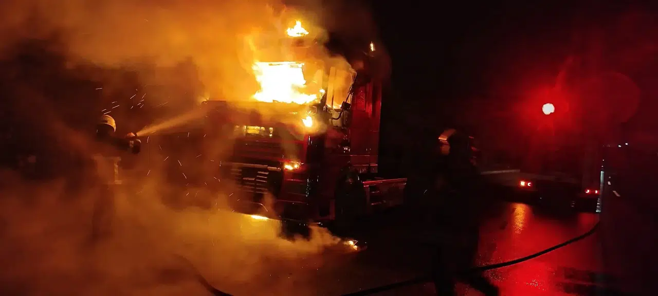 Şanlıurfa'nın Eyyübiye ilçesinde seyir halindeyken alev topuna dönen tırdaki yangın itfaiye ekiplerince kontrol altına alındı.