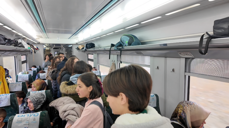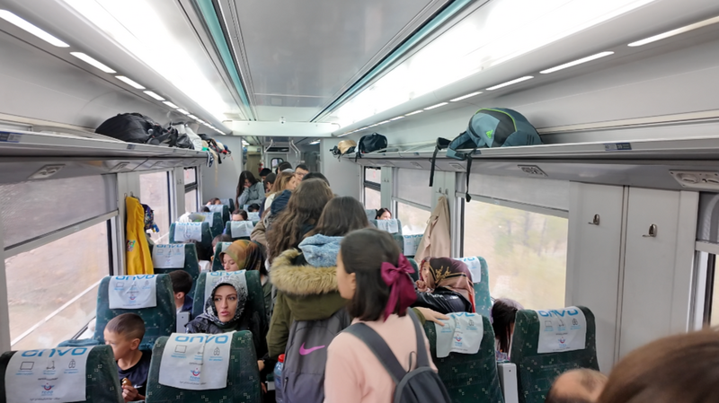 Özellikle öğrencilerin ayakta durmakta güçlük çektiği tren yolculuğunda yer bulmak için herkes birbiriyle yarıştı. Kimi vatandaşlar tren koridorunda kapı önlerinde seyahat ederken kimi yolcular ise 2 kişilik koltuklara 3-4 kişi oturmak zorunda kaldı.