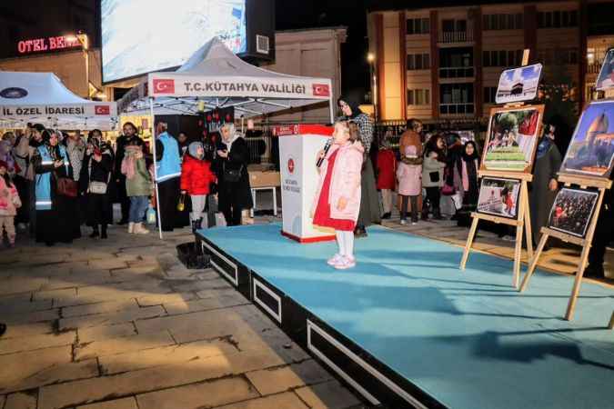 Kütahya Zafer Meydanı, 7 Mart 2023 tarihinde Regaip Kandili'nin manevi atmosferiyle dolup taştı. Minik Kuran Kursu öğrencilerinin şiirler ve dualar okuduğu programda, 200'e yakın Kur'an Kursu öğrencisi ve il protokolünden birçok isim bir araya geldi.