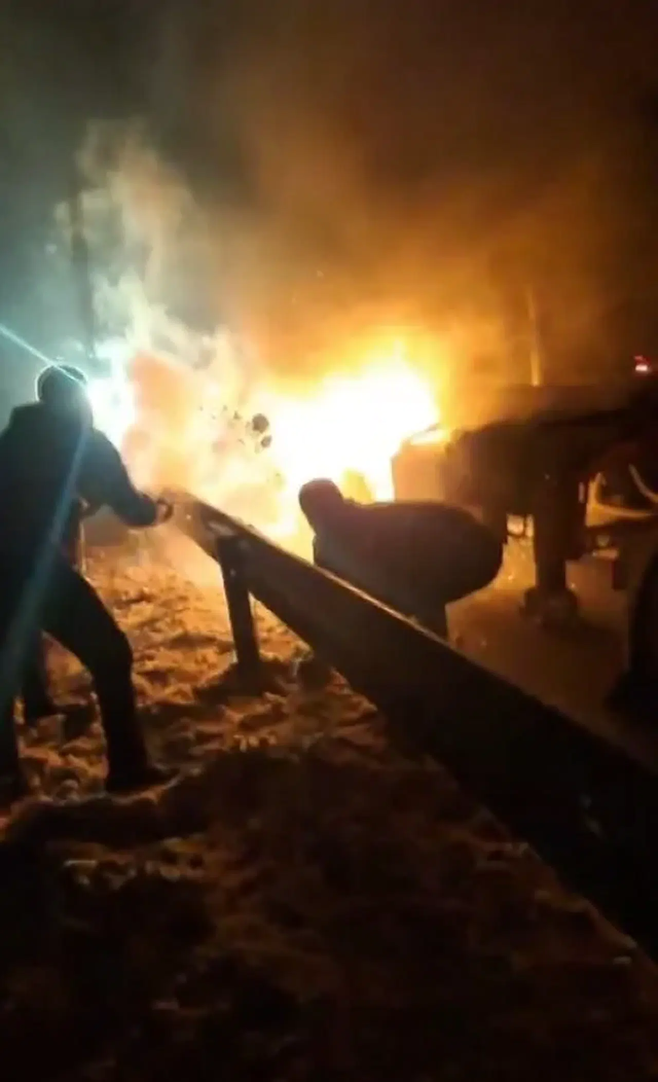 Tırın yakıt deposunda başlayan yangın, kısa sürede büyüdü. Tırı yol kenarına park ederek alevlere müdahale etmek isteyen şoföre, yoldan geçen vatandaşlar yardım etmek istedi. Alevlerin büyüyerek tırı kaplamasını engellemek isteyen vatandaşlar, elleriyle kar atarak söndürmeye çalıştı. Vatandaşların çabası, çevrede bulunan bir cep telefonu kamerasına yansıdı.