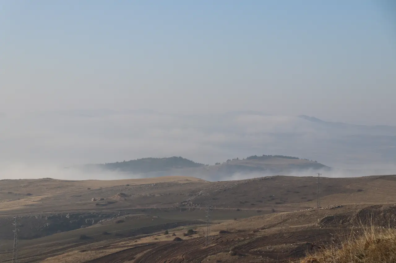 Termometrelerin sıfırın altında 2 dereceyi gösterdiği kent genelinde sabah saatlerinde yoğun sis etkili oldu. Özellikle şehrin batısındaki 2 bin rakımlı Merakum Tepesi'nden sis tabakasının oluşturduğu manzara görenleri mest etti. Kent, nadir görülen yoğun sis bulutlarının altında adeta kaybolurken, ortaya çıkan görüntüler doğa tutkunlarını hayran bıraktı.